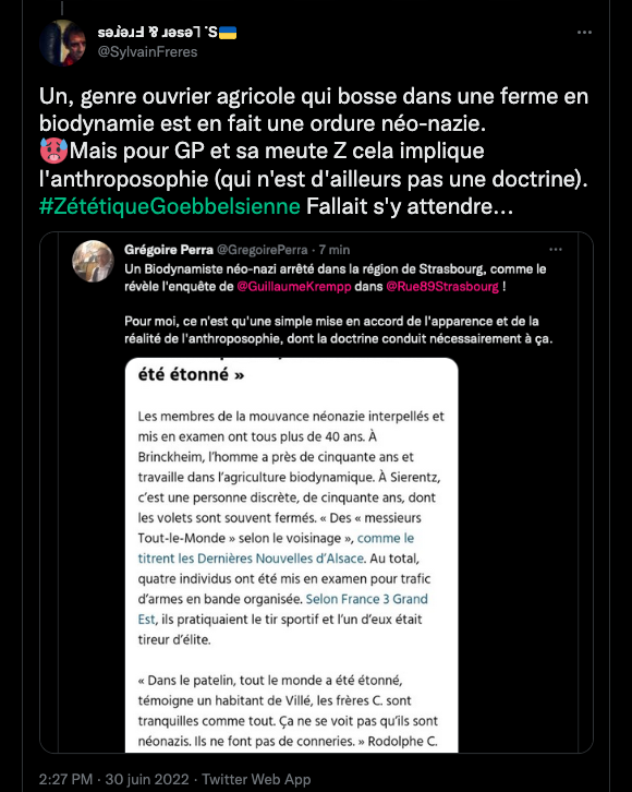 _ Tiens donc! Voici encore l’habituel représentant Twitter de la Franc-Maçonnerie qui déteste l’anthroposophie et la biodynamie. https://twitter.com/ZGorgone/status/1540254624292245505?s=20&t=dYa2UOIQtWjZwT94p3cvRQ