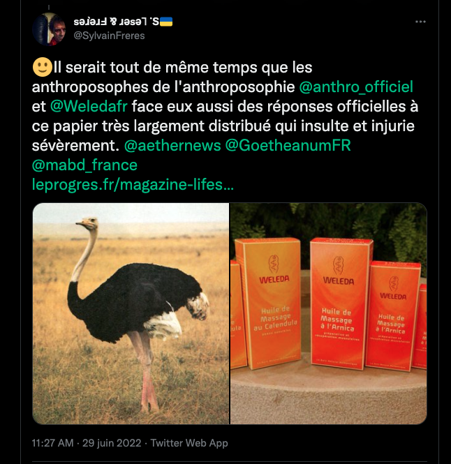 _ C’est surtout la zététique qui raconte ci et ça de l’anthroposophie sur les réseaux sociaux, c’est vos copains? https://twitter.com/RatSongeur/status/1541554100382441473?s=20&t=FGnS3wEEjS-CgVBCbTEGwg