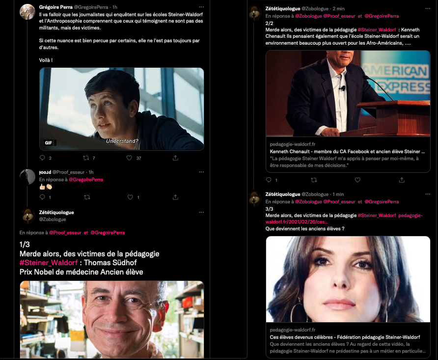 « La pseudo zététique anti anthroposophes, anthroposophie, biodynamie, pédagogie #Steiner_Waldorf est une grosse arnaque malsaine… Octobre 2022 par Sylvain Leser » https://twitter.com/Zobologue/status/1576334193130614784?s=20&t=mBBNkh3TuDFYOIEnxIfeDQ