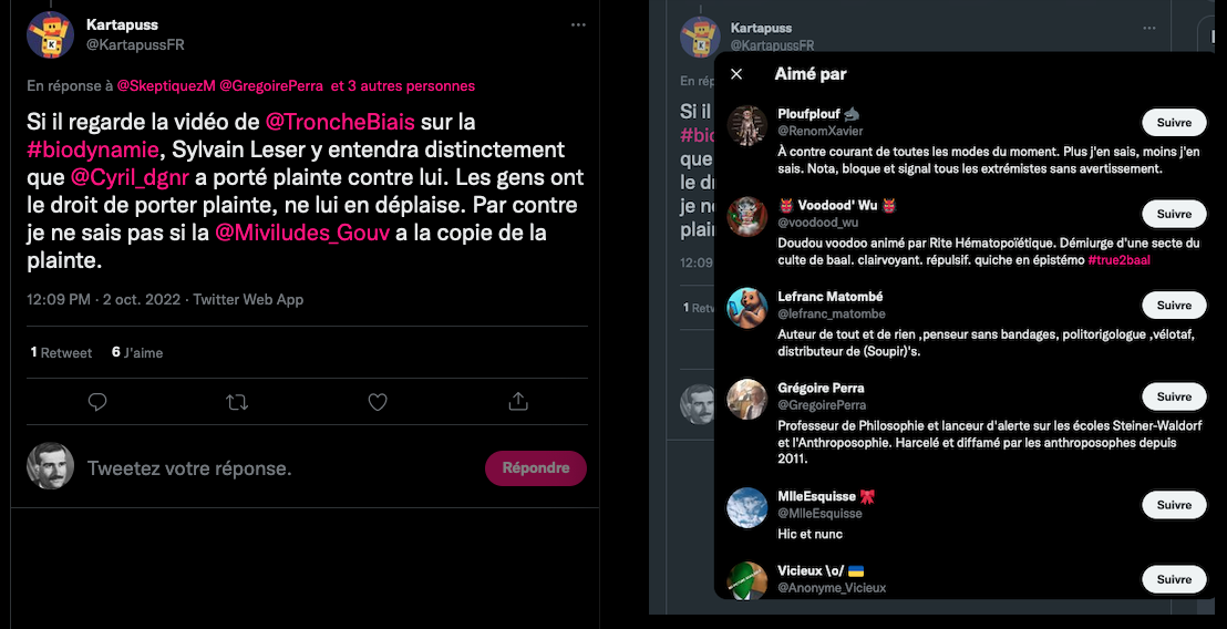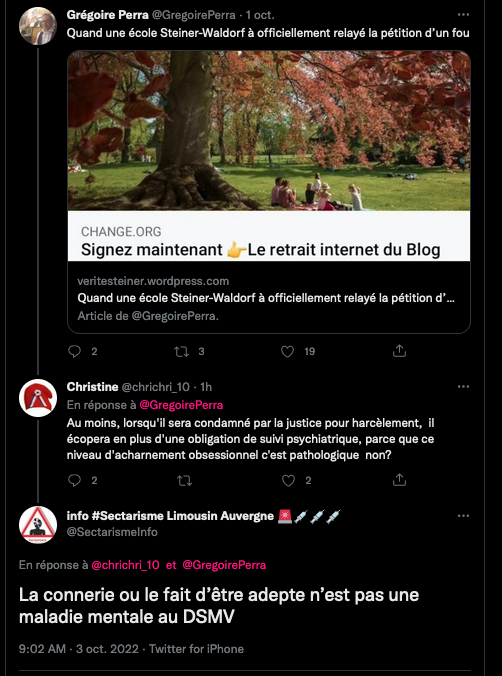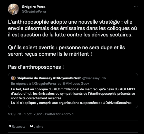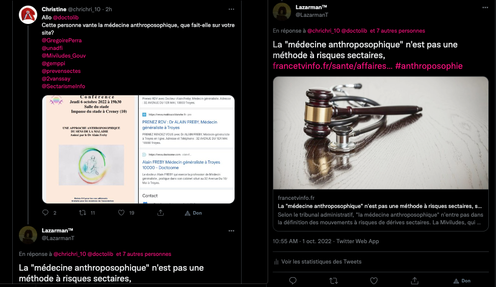 _ Les menaces de plaintes véreuses et le mob-bashing continue à l’encontre de Sylvain Leser de la part de la milice anti anthroposophie, anthroposophes! La @Miviludes_Gouv