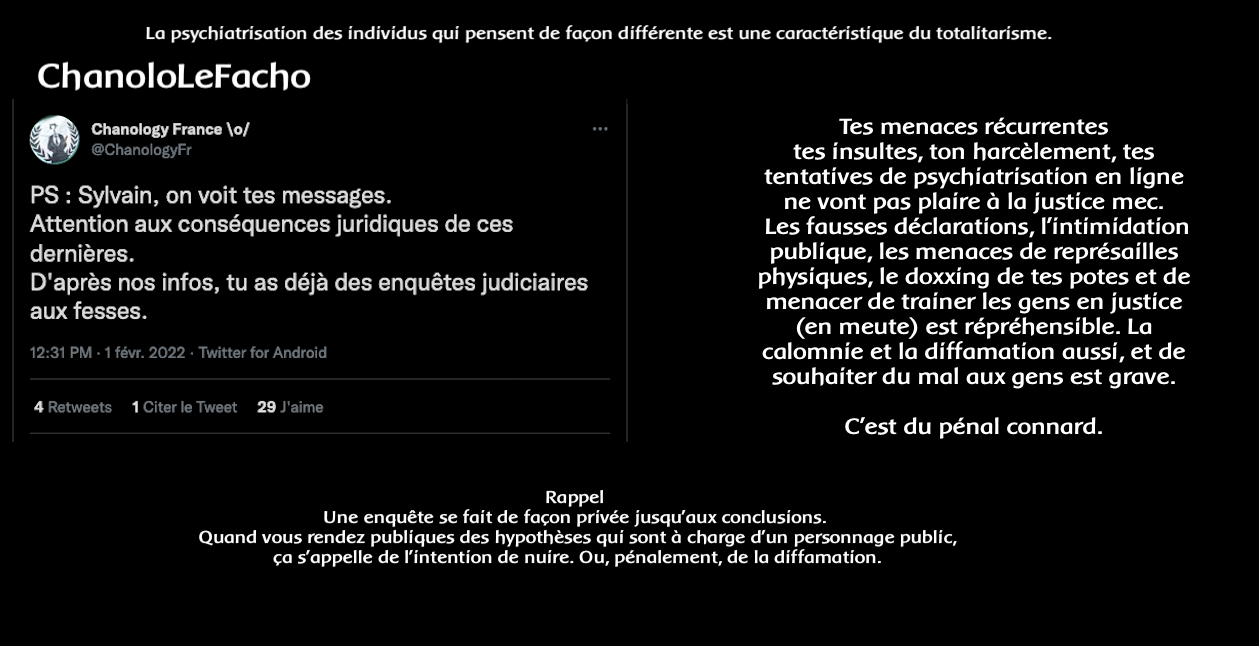 ⚖️ ChanoloProut & GP rempilent dans la diffamation & la calomnie malsaineLes menaces de plaintes, les fausses déclarations & l’intimidation en meute c’est répréhensible https://twitter.com/SylvainFreres/status/1516577004199555075?s=20&t=sJstZceQuVoMFAOA4lXpaQ… https://twitter.com/SylvainFreres/status/1517250002913046530?s=20&t=sJstZceQuVoMFAOA4lXpaQ… https://twitter.com/SylvainFreres/status/1522192816750874625?s=20&t=sJstZceQuVoMFAOA4lXpaQ… https://twitter.com/SylvainFreres/status/1477782158248972289?s=20&t=sJstZceQuVoMFAOA4lXpaQ… #anthroposophie2.0 Versus les FACHOS.