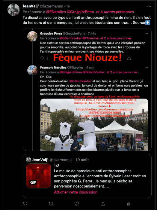 Grégoire Perra aime. https://twitter.com/Zobologue/status/1576332375965196288?s=20&t=mBBNkh3TuDFYOIEnxIfeDQ & https://twitter.com/Zobologue/status/1516831993920880640?s=20&t=mBBNkh3TuDFYOIEnxIfeDQ &https://twitter.com/SylvainFreres/status/1516818810174595086?s=20&t=mBBNkh3TuDFYOIEnxIfeDQ
