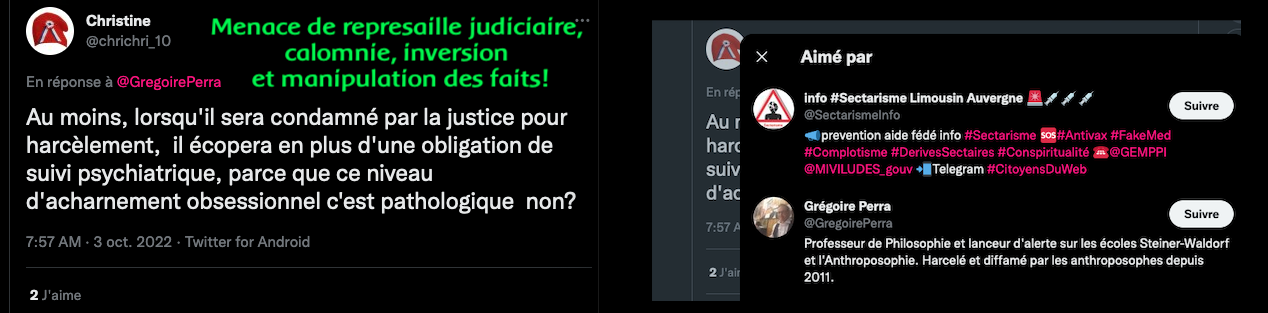 ⚖️ Gravissime! Les menaces de plaintes véreuses & fallacieuses, le mob-bashing continue à l’encontre de Sylvain Leser de la milice anti anthroposophie, anthroposophes! La @Miviludes_Gouv