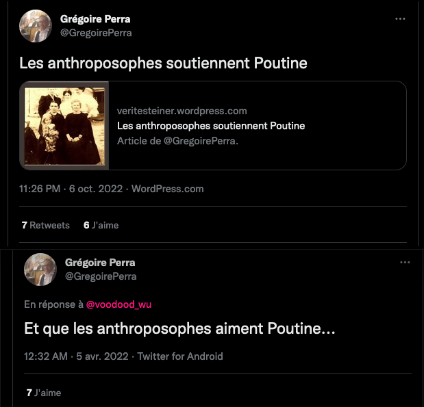 😬 Oh! L’ami fidèle de Grégoire Perra qui fait de l’humour sur les anthroposophes de Twitter.. https://twitter.com/ZGorgone/status/1576312846622679041?s=20&t=THogb6P6GQeYLes4HyMwNw