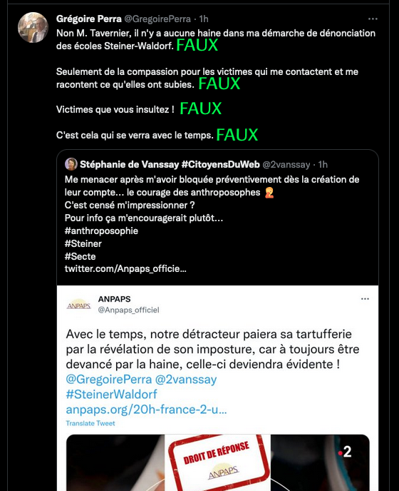 Ce serait aussi peu pertinent (ce n’est que mon analyse) que de considérer que la série du Monde est une commande de l’anthroposophie, qui à minima est une structure sociale formelle contrairement à « l’anti-anthroposophie » qui relève d’un agrégat informel de critiques disparates. https://twitter.com/lorisguemart/status/1611673535331573760?s=20&t=ePRrNWAmsJZwmwfShvP0Uw … : https://twitter.com/RatSongeur/status/1611677634789793795?s=20&t=rBvUIIwQCRC2pX2uPX-4HA & https://twitter.com/RatSongeur/status/1611678662881062912?s=20&t=rBvUIIwQCRC2pX2uPX-4HA PAS BRAVO: Il se source surtout via les nervis de l’anti anthroposophie, il ne cite qu’eux et leurs allégations fallacieuses, ses explications sont pas terribles à ce sujet. Fact and Furious et les trollos habituels. Bonne soirée. https://twitter.com/RatSongeur/status/1611858750393950210?s=20&t=AFVznKZg9sq4igk9q51Fww