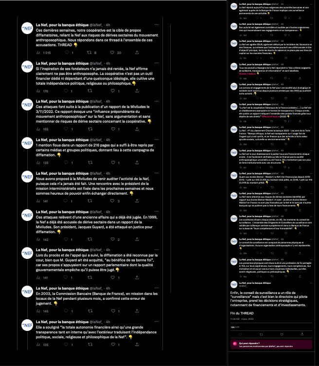 La Nef se rebiffe mais c’est pas super propre (à mon gout) en radotant et prêtant crédit au rapport malveillant de la Miviludes sur la pédagogie #SteinerWaldorf. Car il y a zéro = O cas avéré de dérive sectaire lié à l’#anthroposophie et ses fruits = O ⤦