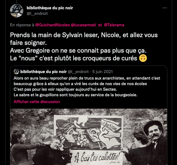 _Tu discutes avec l’un d’entre eux d’ailleurs, ce qu’on fait de pire en France, les collabos. Les techno-fa. Il traite les personnes d’antisémite alors qu’il en est un lui même. Ils font des remakes de « Forces occultes » en permanence… https://twitter.com/RatSongeur/status/1611853329415430144?s=20&t=2Y0Hfaw4JtLpf3iIi6eyMg