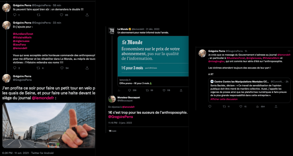 😉 Trop drôle, je tombe la dessus: Le Monde. Y a GP @GregoirePerra qui voudrait que vous vous excusiez auprès des victimes, mais lesquelles? @lemondefr, en particulier à @AurelianoTonet, @virglarousse,@ViolaineMorinet@missglouglou sur l’anthroposophie. https://twitter.com/ArchibaldMcEnd/status/1618584897702223872?s=20&t=eo7d5_qSASOkVSw_TMCAGQ ⬇︎