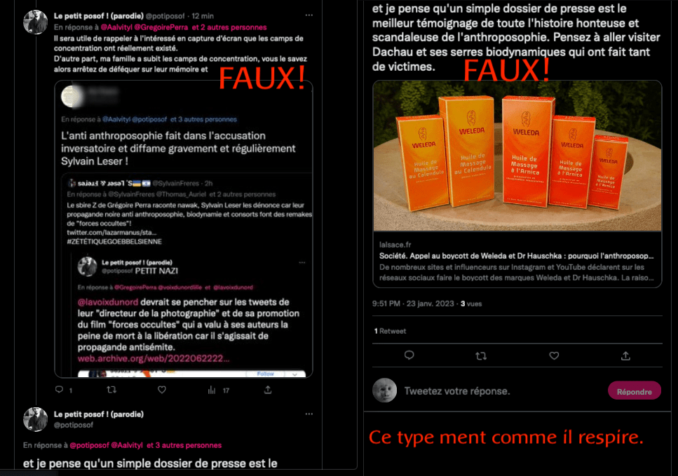 🥕_ Ah oui, de vérifier quoi? Que Grégoire Perra dont les propos sont faux et calomniant, haineux absolu de la biodynamie et de l’anthroposophie s’attaque fallacieusement à Sylvain Leser en l’injuriant publiquement et salissant son travail honorable. 🧵Thread réponses : https://twitter.com/SylvainFreres/status/1617807241171857408?s=20&t=qvCLegE8szoBpe8GSwu4LA