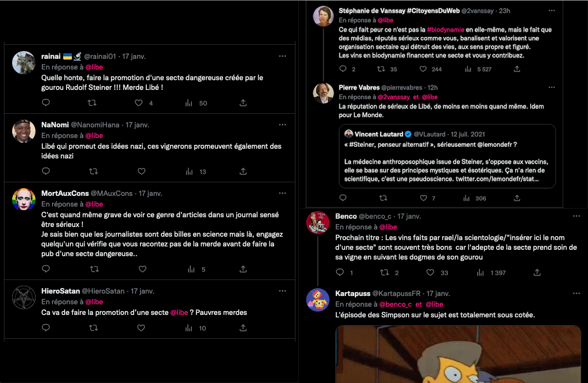 Les anti anthroposophie, biodynamie sont issues d’une secte techno-facho qui racole pour l’agro-pétrochimie et qui se nomme zététique. des pervers sans scrupules qui s’attaquent aux personnes. Comme c’est le cas ici. https://twitter.com/RatSongeur/status/1550816920332541952?s=20&t=kCs-XFeySjbg7bHAJYfKUw : https://twitter.com/SylvainFreres/status/1617624915309629442?s=20&t=FLMc-6w8_rWIZylzd08A7g