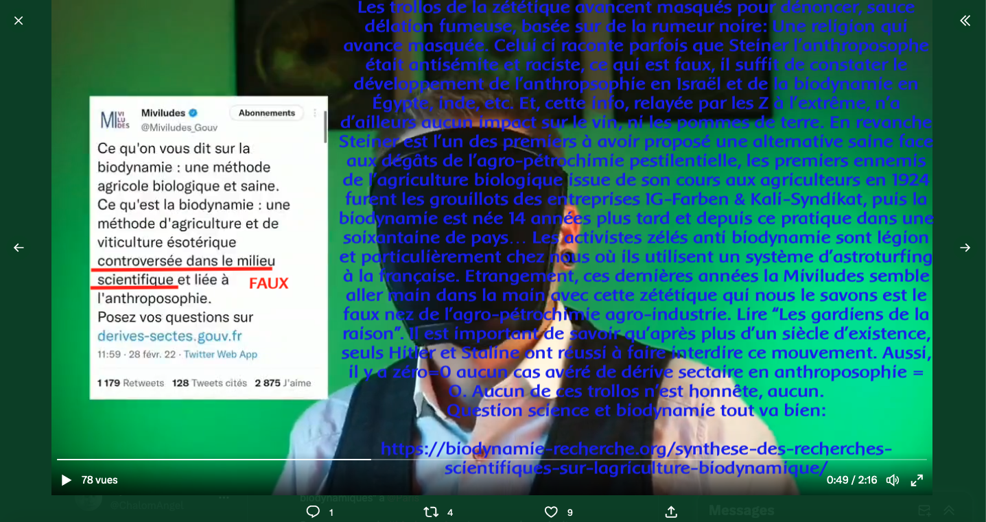 _ Les activistes Z anti biodynamie! Sont-ils les scientifiques experts recommandés? https://twitter.com/LazarmanV/status/1629378711169519616?s=20 & Vous en racontez des idioties les gars sur la biodynamie et l’anthroposophie et puis il y a vos menaces. https://twitter.com/LazarmanV/status/1629377467453517825?s=20 & Les grouillots zététique de l’agro-pétrochimie en 2023 sont-ils pires que ceux des débuts!?? « ils se ressemblent beaucoup ». https://twitter.com/LazarmanV/status/1629379671388311554?s=20 & https://twitter.com/LazarmanV/status/1629380070732189697?s=20 & https://twitter.com/LazarmanV/status/1629380626058035201?s=20 … https://twitter.com/LazarmanV/status/1629381519805501440?s=20 & https://twitter.com/LazarmanV/status/1629381917849034752?s=20 –