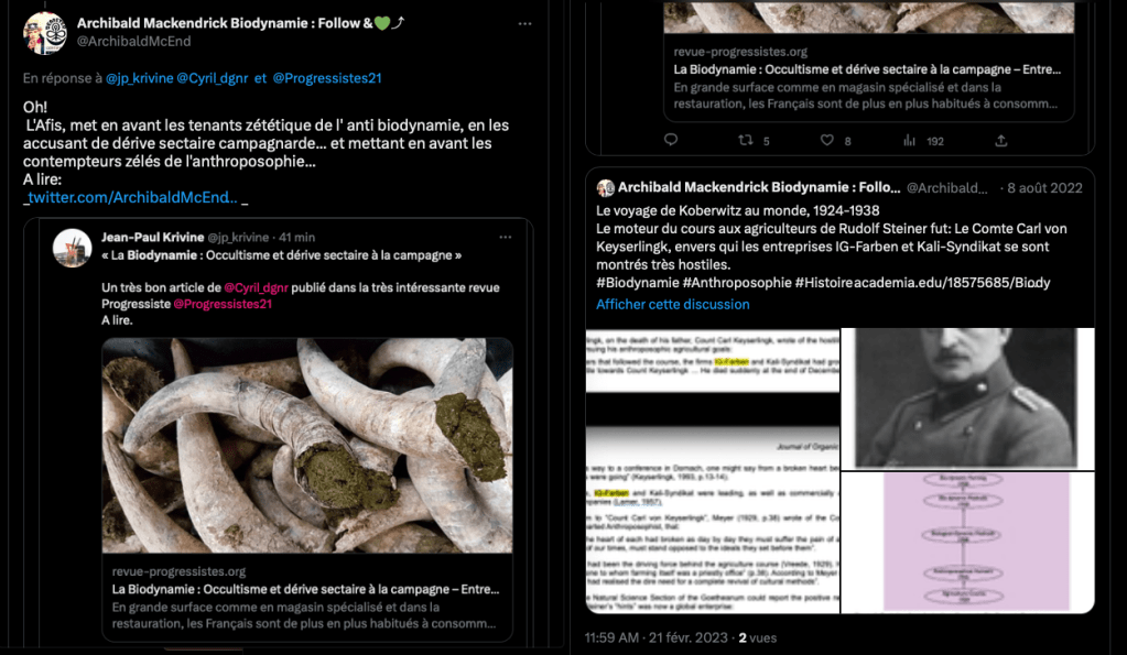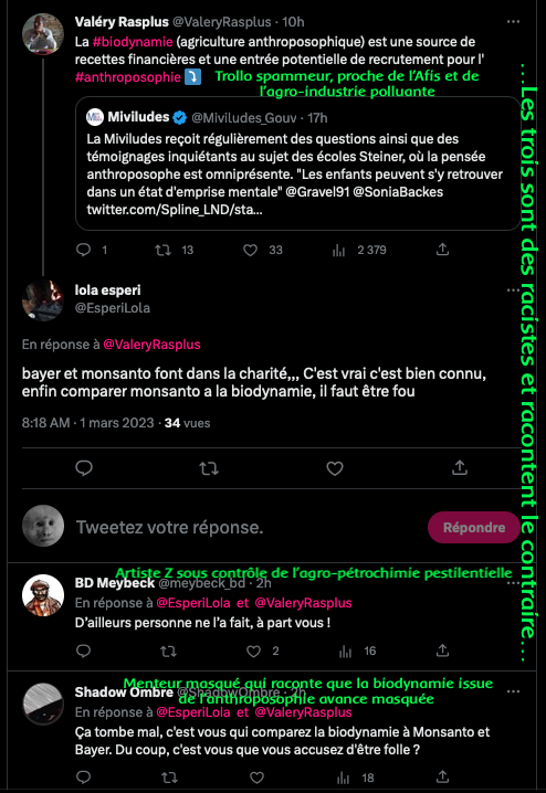 _ 1/3 La racaille zététique révisionniste anti biodynamie continue de déverser des débilités racialistes sur l’anthroposophie. L’agro-pétrochimie utilise des grouillots malsains, IG-Farben faisait la même chose. https://twitter.com/RatSongeur/status/1629420243280953344?s=20 & https://twitter.com/RatSongeur/status/1629421459419299841?s=20