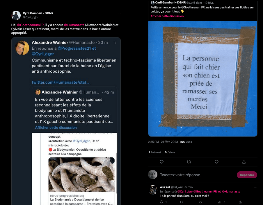 2 _ Je n’invente rien question haine à l’encontre de l’anthroposophie, #SteinerWaldorf, biodynamie, les menaces graves à l’encontre de ceux qui défendent sont massives, constantes, débiles, pénibles. https://lamehumaine.com/2023/02/21/les-anthroposophes-seraient-ceci-cela-fevrier-suite-et-fin/ : https://twitter.com/LazarmanV/status/1629807302369845253?s=20 &