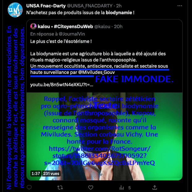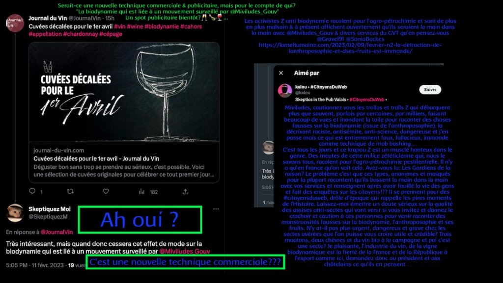 Un trollo masqué de la zététique (fan d’agro-pétrochimie) anti biodynamie (issue de l’anthroposophie) qui avancerait masquée s’attaque au salon prestigieux du vin, il poke @LaRVF_mag @JBaudouinRVF @OlivierPoels @AGoujard… et la #Miviludes