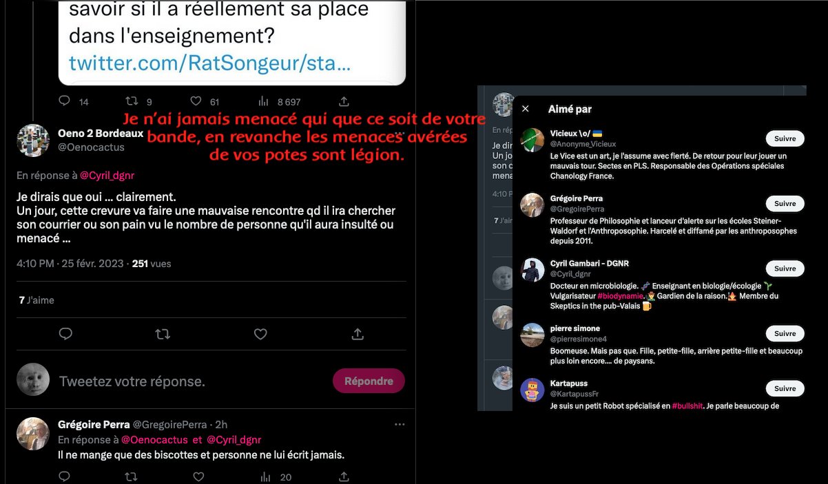 ⚖️ Les menaces gravissimes de votre communauté zététique anti anthroposophie sont légion à l’encontre de ceux qui défendent cette dernière. Cela se voit.