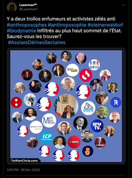 _Il y a déjà eu des attaques musclées et abjectes anti anthroposophie sur ce réseau social mais pas de la sorte… https://twitter.com/LazarmanT/status/1629566736616783872?s=20