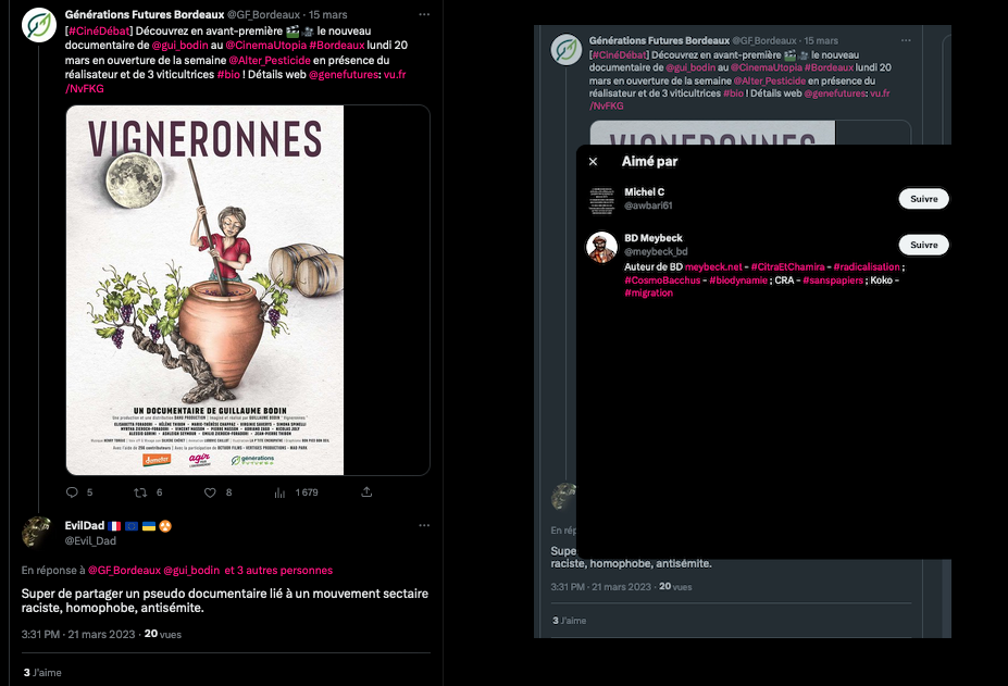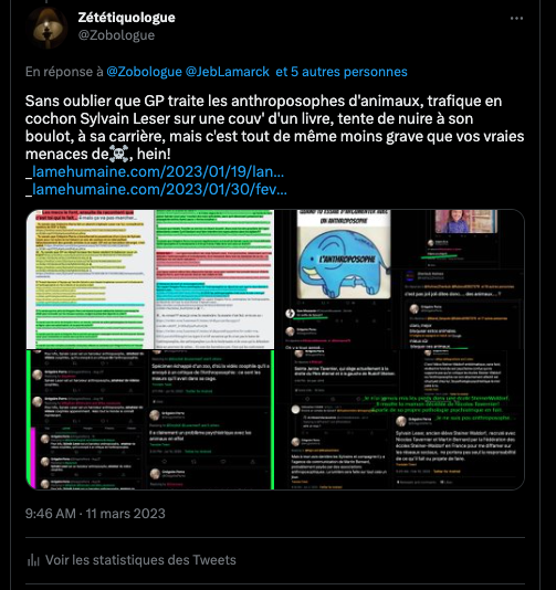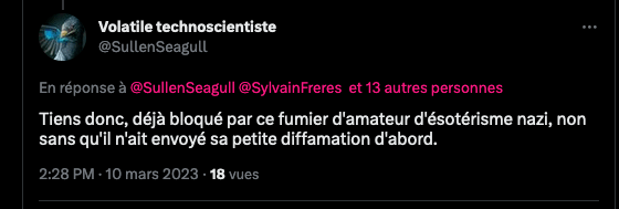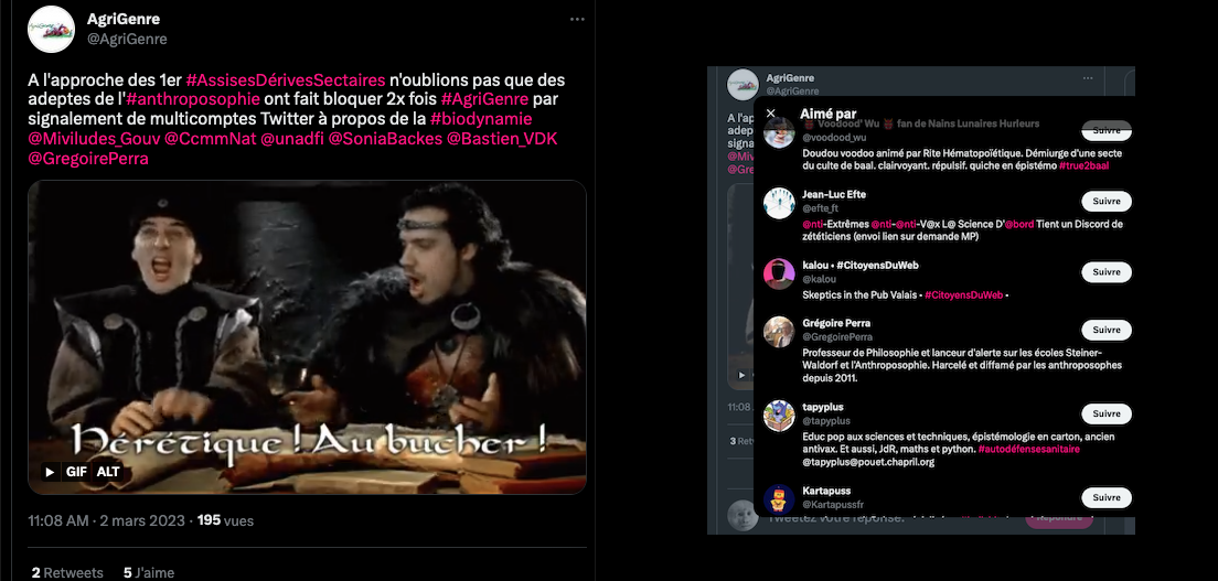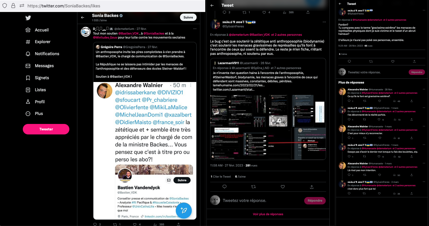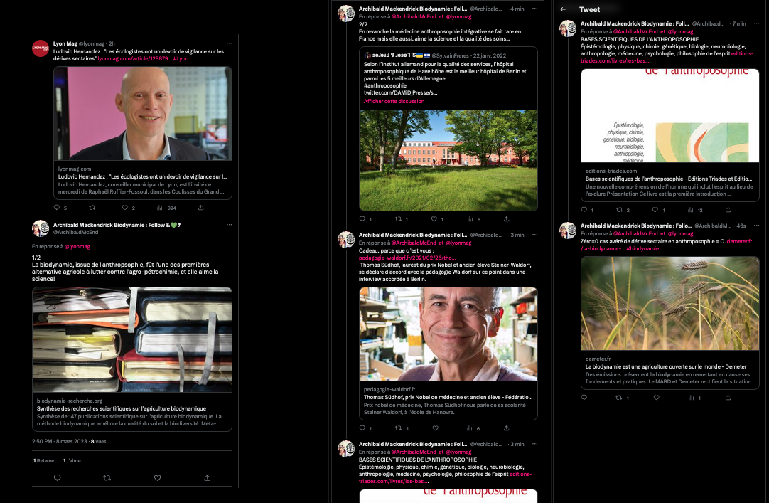 https://twitter.com/SylvainFreres/status/1476643242825367554?s=20 : https://twitter.com/RatSongeur/status/1632312867180490753?s=20 _Les activistes anti anthroposophie, biodynamie de la zététique, comme leur précurseurs révisionnistes négationnistes fabriquent de la fumée noire bien dégueulasse. Ces types enseignent, ça pue… :https://twitter.com/SylvainFreres/status/1632314118727249926?s=20