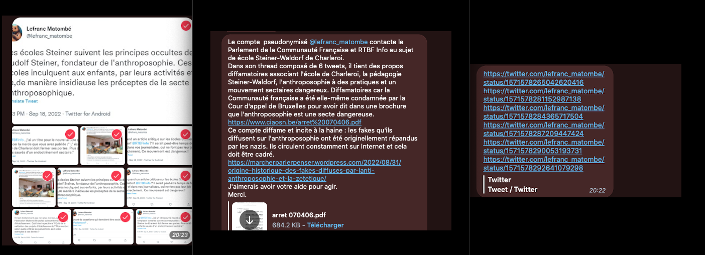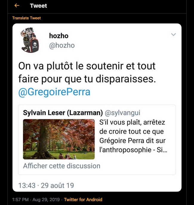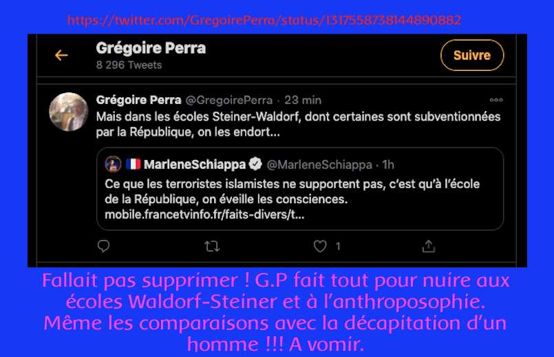 _ « Cette trollo anonyme anti anthroposophes, anthroposophie #SteinerWaldorf est immonde, abjecte et participe à des menaces graves,……… »