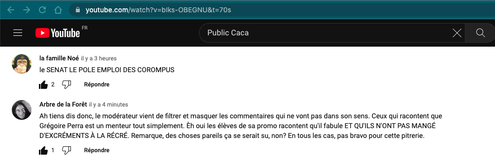 😏 MAIS MASQUE LES COMMENTAIRES…. Les propos de Perra sont excréments violents…