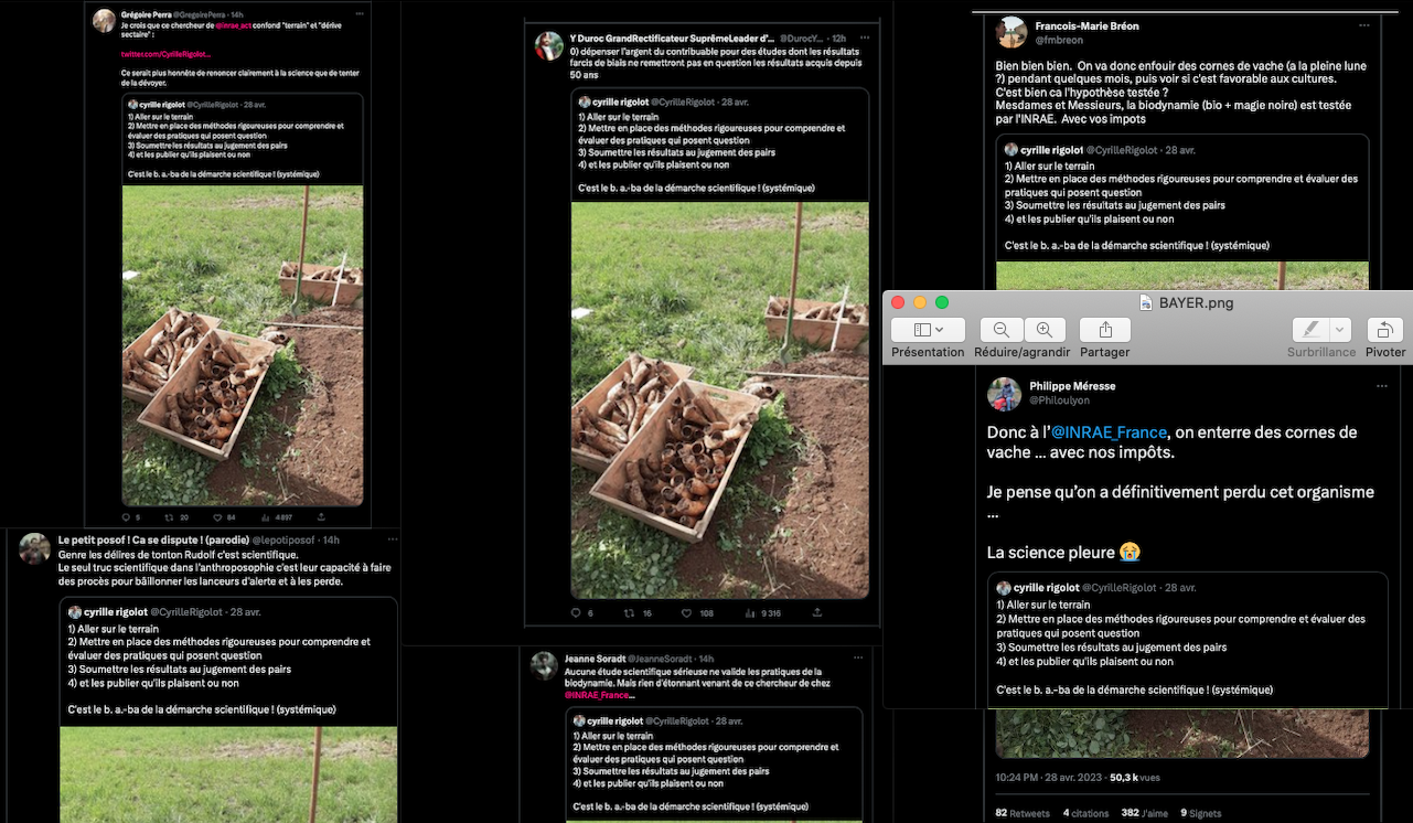 🥕🥕🥕🥕 Nouvelle attaque anti science des activistes anti biodynamie mais pro agro industrie, l’Afis, Yann D, les Z et les contempteurs habituels, sauce la bande à Bayer https://twitter.com/ArchibaldMcEnd/status/1621256394690232322?s=20 https://twitter.com/RatSongeur/status/1519448659112468481?s=20 https://twitter.com/RatSongeur/status/1635274884548034564?s=20 https://twitter.com/SylvainFreres/status/1651669804745388051?s=20 : https://twitter.com/ArchibaldMcEnd/status/1652225308907429888?s=20 & Tout le monde cherche a comprendre si les plantes communiquent avec des sons et comment ça fonctionne, donc si cette ‘sorcière’ le fait, laissons la tranquille. Cela dit, le bruit des tracteurs zététique se remarque aussi : https://twitter.com/ArchibaldMcEnd/status/1652228072941182978?s=20