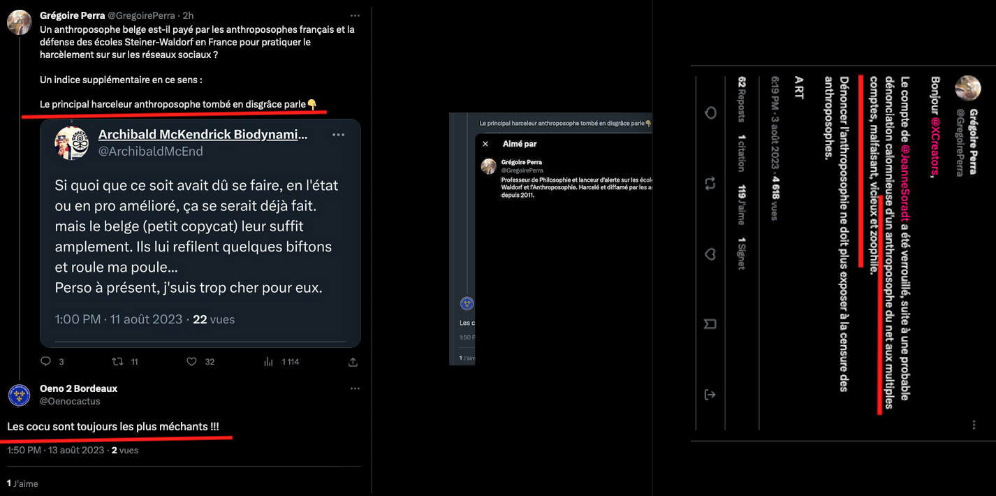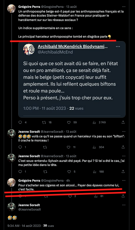 2 commentaires sur “Sylvain Leser reste sur X (Twitter) uniquement pour surveiller les menaces graves et les calomnies de la bande de l’anti anthroposophie/biodynamie…❌”