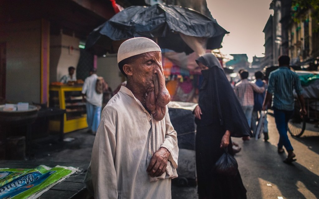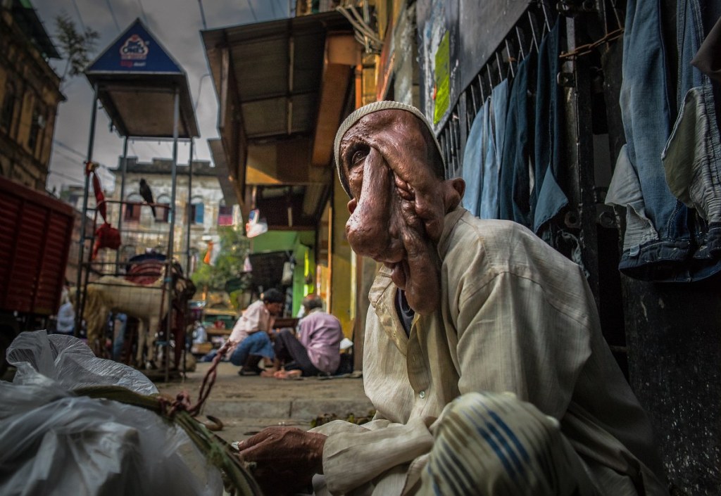 27/08/2013 – – Manan est un homme d une cinquantaine d annees qui vit, dort et mendie a cote de la grande mosquee Nakhoda Masjid, dans le quartier Nord de Calcutta. Il souffre du syndrome d Elephant Man, un neurofibromatose de type I qui est aussi appele maladie de Recklinghausen. Manan dit de lui-meme : « Je suis un pauvre homme ! » Sylvain Leser / Le Pictorium – Jeu de societe, pour un groupe d’enfant sourd muet d’un des bidonvilles de Colaba Sylvain Leser / Le PictoriumVous la reconnaissez ? Lieu d’hebergement de pelerin du temple D’Or d’Amritsar Un vieux Sikh du Temple