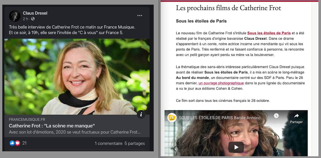 Il est préfacé par Catherine Frot, qui incarnera une femme sdf dans le prochain film de Claus Drexel : Sous les étoiles de Paris (sortie au cinéma le 28 octobre).