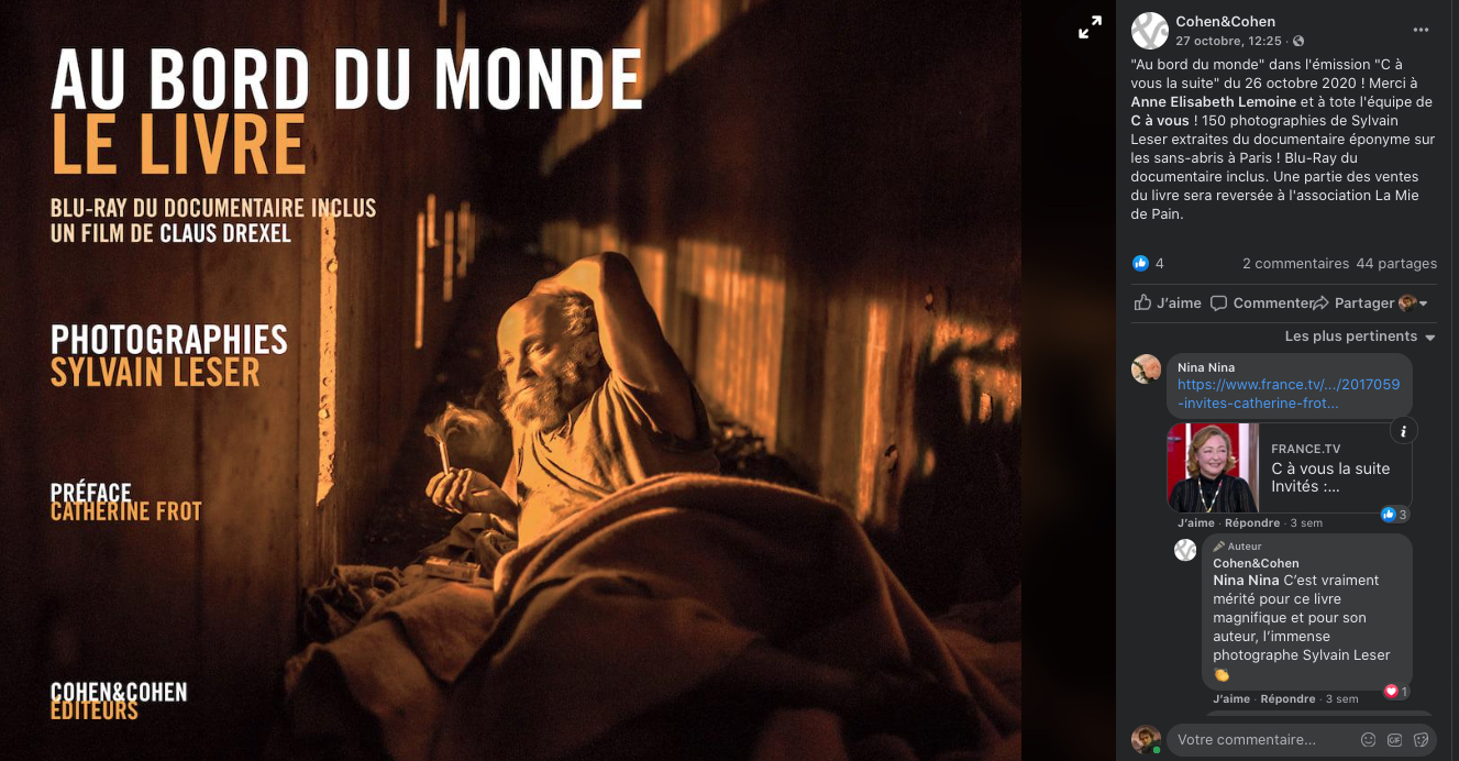 Les Ă©diteurs de livres d’art Cohen&Cohenhttps://www.cohen-cohen.fr/au-bord-du-monde-le-livre & https://www.facebook.com/photo/?fbid=10214317521251714&set=a.1113955948906