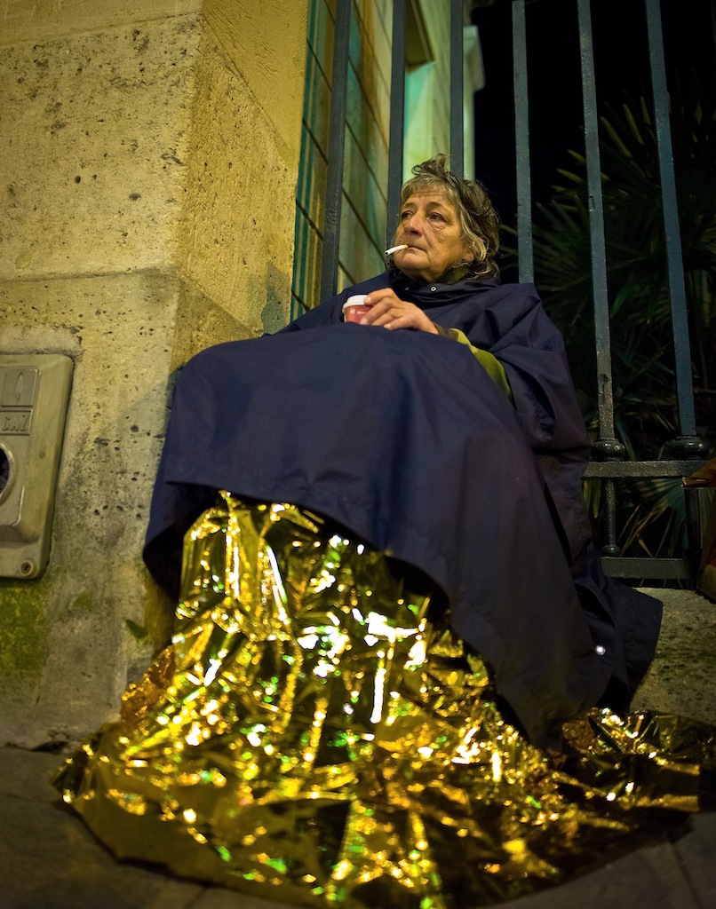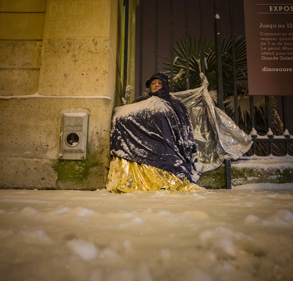 Au dĂ©but du tournage, nous sommes allĂ©s avec lâĂ©quipe Claus et Nicolas vers Austerlitz oĂč jâavais dĂ©jĂ rencontrĂ© plusieurs personnes vivant dehors. Ă Elle, je ne lui avait jamais parlĂ©e, je la voyais se tordre et s’emmitoufler sans vraiment connaitre son visage. Câest ça qui me bouleversait Ă ce moment-lĂ , que jâavais photographiĂ©.