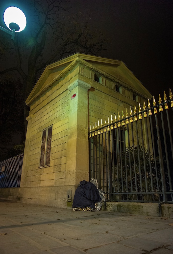 Une nuit dâorage, jâĂ©tais passĂ© la voir en avance, seul, nous nous donnions rendez-vous avec Claus les soirs en semaine aprĂšs le dernier mĂ©tro lorsque le dernier parisien est rentrĂ© chez lui⊠Vers 3h du matin, je les trouvais souvent rĂ©veillĂ©s dans le calme de la nuit sans la bande passante des passants et du brouhaha pressĂ©. Je lâai vue capituler devant cette pĂ©nible averse, elle chantait Ă tue-tĂȘte pour se donner du courage, un torrent. Elle sâest levĂ©e pour aller se mettre quelques moments Ă lâabri. Jâai moi aussi abdiquĂ©, il y avait trop de flotte.