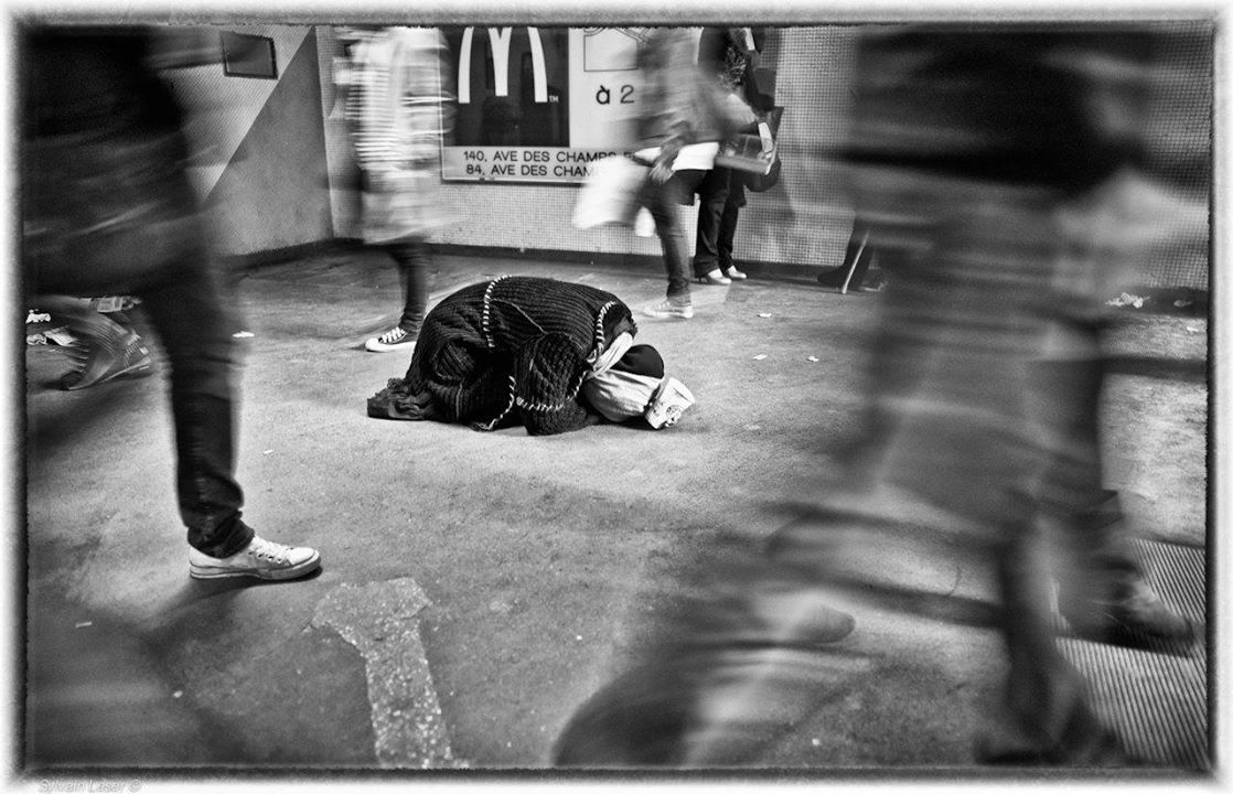 Câest une rĂ©gression Ă lâĂąge des cavernes qui se dĂ©roule sous lâArc de triomphe de Paris. Sous la plus belle avenue du monde, dans ce long tunnel qui traverse lâavenue des Champs-ĂlysĂ©es jusquâĂ celle de la Grande ArmĂ©e, câest un lieu sans lumiĂšre et sans eau, des plus sordides et tĂ©nĂ©breux qui soit. Câest lĂ que vit Henri, complĂštement dĂ©muni et depuis plus de 30 ans, dans le bruit, la poussiĂšre des moteurs et des freins. L’endroit est lugubre et infernal, dâune insalubritĂ© rare, l’odeur y est insoutenable. Ce tunnel semble ĂȘtre lâantichambre de la mort. Lâallure de ce personnage est biblique. Il ne possĂšde rien, aucune affaire et dâailleurs je crois quâil nâen veut pas vraiment. Il passe ses journĂ©es et ses nuits, jonchĂ© Ă mĂȘme le sol, vivant quasiment nu devant son crĂ©ateur et, pour ainsi dire, dans ses excrĂ©ments. La nuit, il sort fouiller dans les poubelles en quĂȘte de nourriture. Cet homme dâorigine libanaise qui aujourdâhui va pieds nus Ă©tait couturier. Il a quittĂ© son pays entre 1984 et 1985. Il ne parle quasiment plus et n’a plus vraiment la notion du temps qui passe. Il me dit qu’il a 43 ans et qu’il est nĂ© en 1959. Quelque chose ne colle pas, en plus des centaines dâexcrĂ©ments tout autour de sa couche, de ses pieds esquintĂ©s quâil me montre. Sait-il quâil tĂ©moigne ? Il semble conscient de son Ă©tat et ne demande rien. MalgrĂ© sa terrible pauvretĂ©, Henri est un clochard lumineux de gentillesse. Ce sont des retrouvailles en fait. Jâavais rencontrĂ© Henri l’hiver dernier, il y a un an tout juste, avenue Marceau, le trouvant dĂ©jĂ presque nu sur une grille dâaĂ©ration servant de sĂ©choir et de chauffage. Son histoire est connue jusquâĂ Nanterre. Lâun des mĂ©decins associĂ© Ă la fondation du Samusocial (92) me lâavait dĂ©crit mais je nâavais pas fait le rapprochement Ă lâĂ©poque avec cet homme que jâavais croisĂ©. Puis, je lâai perdu de vue. Ce soir, je lâai retrouvĂ© dans la nuit, en haut des Champs-ElysĂ©es. Nous nous sommes reconnus. Cet homme est lâun des sans-abris parisiens rencontrĂ©s qui fait sans doute partie du « Top Ten » de la grande prĂ©caritĂ©, tant son Ă©tat de clochardisation est avancĂ©.Devant ces scĂšnes de trĂ©fonds, je me demande ce qui se joue humainement parlant pour cet homme ayant sans doute perdu la raison et souffrant dâune immense misĂšre. – Lien Audio :https://soundcloud.com/sylvangui/henri-le-jour-comme-la-nuit-illumine