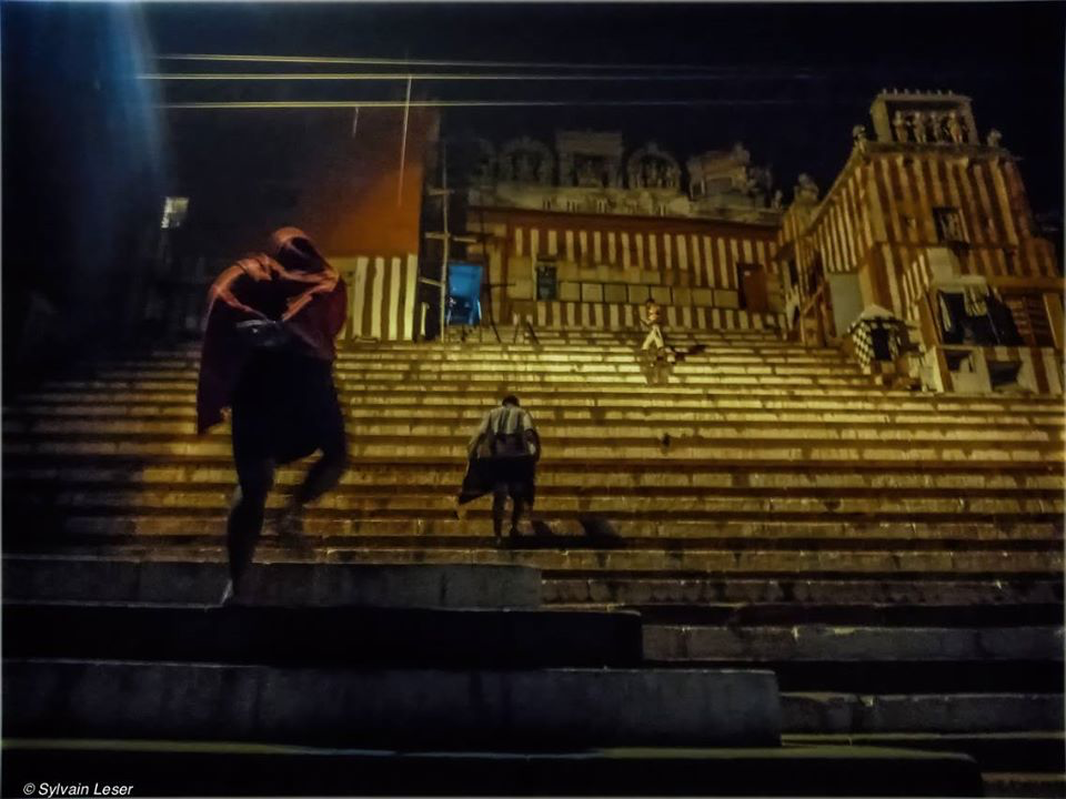 C’est mon endroit prĂ©fĂ©rĂ© de Varanasi, une ville qui m’a complĂštement envoutĂ©, de tous ses innombrables charmes. J’espĂšre m’y rendre Ă nouveau, histoire d’assister Ă nouveau au coin du feu Ă ses grillades si chargĂ©es de dĂ©votions. Tous lĂ bas et d’ailleurs, se savent Ă l’endroit de libĂ©ration, sous l’oeil contemplatif et bienveillant de la caste impur mais vĂ©nĂ©rĂ© des Doms. LâInde a donc tuĂ© la mort. « Ram nam satya hei, »