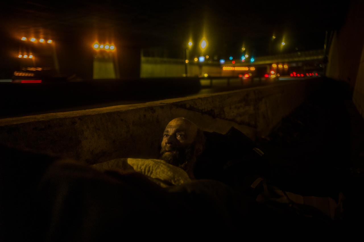 Cette image est forte, c’est l’angoisse et le nĂ©ant, le cri de Munch. Le cri du nĂ©ant. Dans ma petite balade photographique et picturale, c’est sans doute celle-ci qui me scotche le plus, actuellement. C’est aussi un mauvais portrait de mon ami Henri, qui vit depuis plus de trente-cinq ans, dans des tunnels dantesques, sans parler Ă personne. J’ai explorĂ© les profondeurs de la rue et du sordide, je n’avais jamais rencontrĂ© un endroit pareil. Cette lumiĂšre et son Ăąme me brĂ»lent encore. Il n’y a qu’une seule chose Ă faire en ce lieu et c’est mourir, mais la mort ne vient pas.