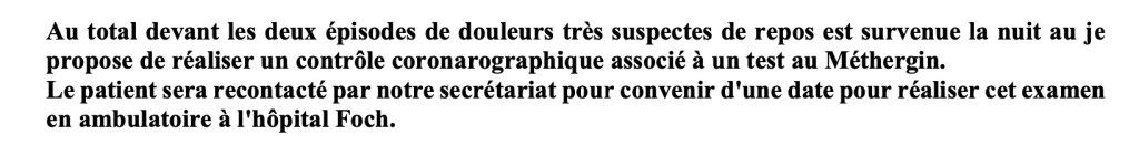 Le type vient me chercher avec un : – « C’est qui qui Ă©crit aussi mal que moi? » en parlant du nom sur la fiche de lâordre des arrivĂ©es. – « Alors!?» Le mec lit bien mon long compte rendu dâhospitalisation, 6/7 pages, me regarde et me dit :