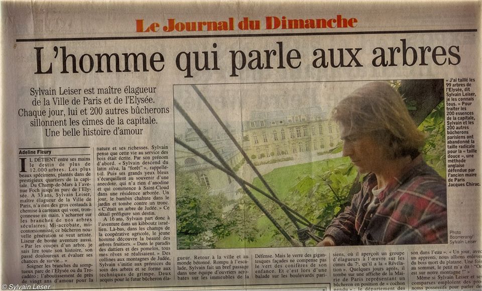7/ Je rentre avec ma compagne en France, en banlieue, et je ne me vois pas retourner dans l’hĂŽtellerie de luxe en tant que larbin de prestige. Un jour, je vois des types encordĂ©s comme des alpinistes Ă plus de trente mĂštres de hauteur dans des arbres. La semaine suivante, je tombe sur une affiche de la Ville de Paris qui recrute et forme des Ă©lagueurs-bĂ»cherons. Jâenvoie mon CV dâagriculture tropicale et une nouvelle aventure commence. Jây ferai une carriĂšre de 22 ans. Je suis bon en taille et soin des arbres dâornement. On me confie les arbres de lâĂlysĂ©e. Je passe mes journĂ©es perchĂ© avec mes collĂšgues, les Tarzans des villes.